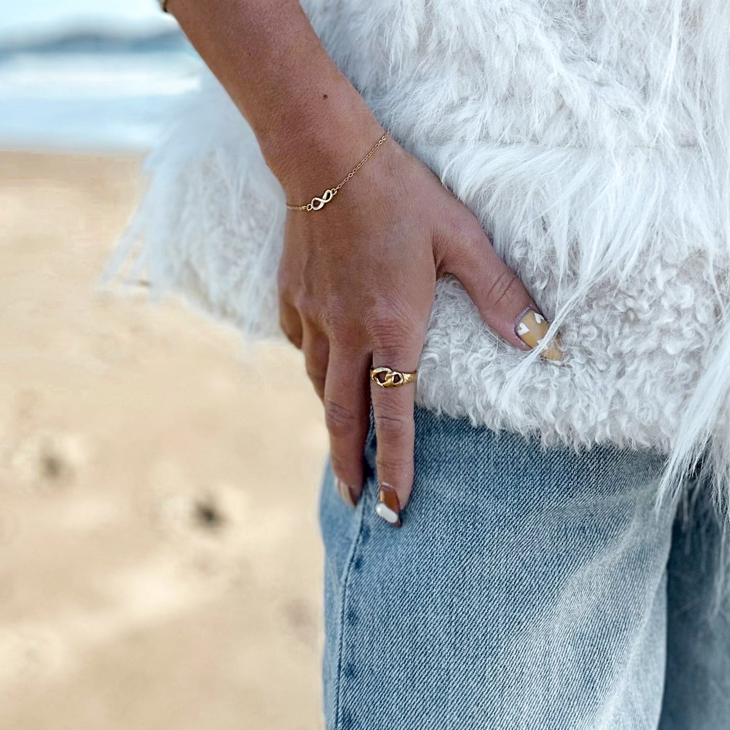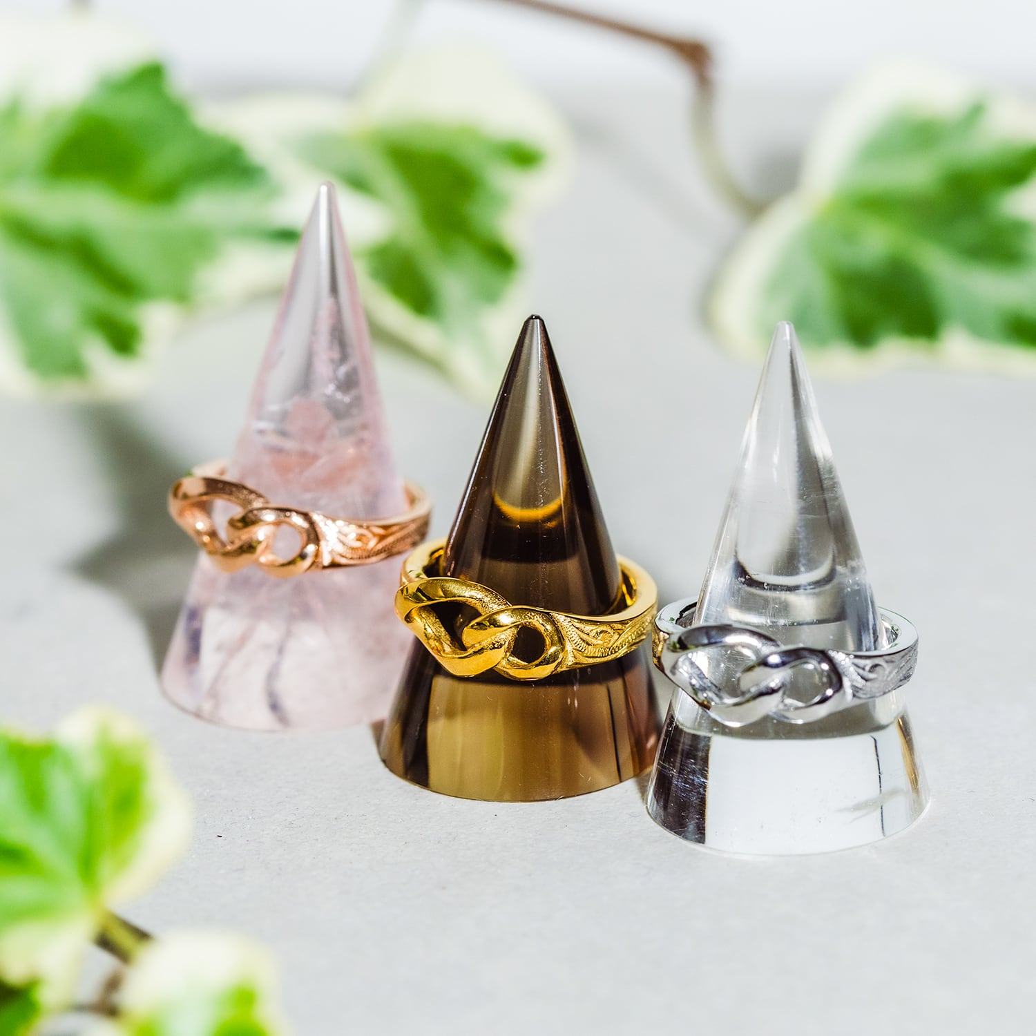 他のリングやブレスレットなどと一緒に身に着けと表情ががらりと変わります♪