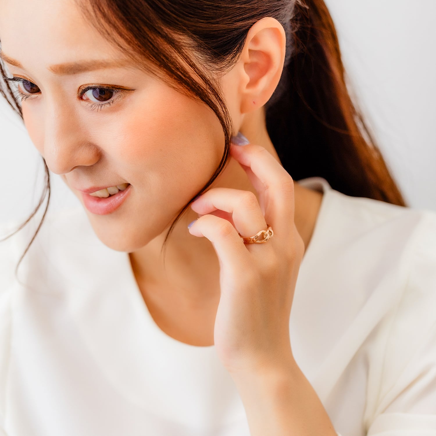 シンプルな指輪は他のジュエリーと組み合わせやすく、
