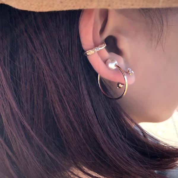 【年始セール】ハワイアンジュエリー イヤーカフ 片耳用 スクロール 淡水パール サージカルステンレス 金属アレルギー対応 ges8203