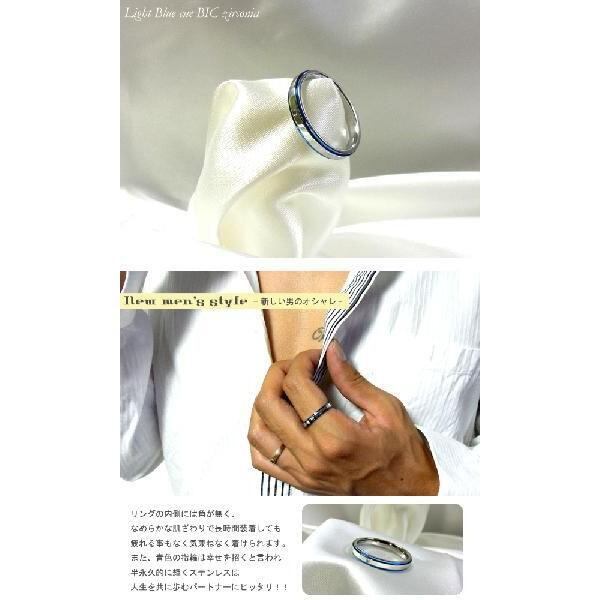 青、青、し過ぎないやわらかいブルー!青空のようなさわやかな青に小粒CZをSET!さらに細身なリングでしか演出できない高級感とセクシーの共存!リングの内側には角が無く、なめらかな肌ざわりで長時間装着しても疲れる事もなく気兼ねなく着けられます。また、青色の指輪は幸せを招くと言われ半永久的に輝くステンレスは人生を共に歩むパートナーにピッタリ!!