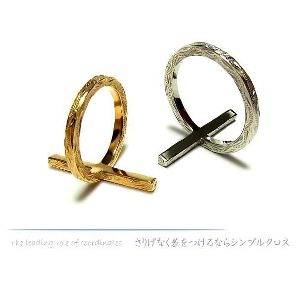 【年始セール】ハワイアンジュエリー リング クロス K14イエローゴールドコーティング メンズ レディース スチールシルバー クロス grs8638