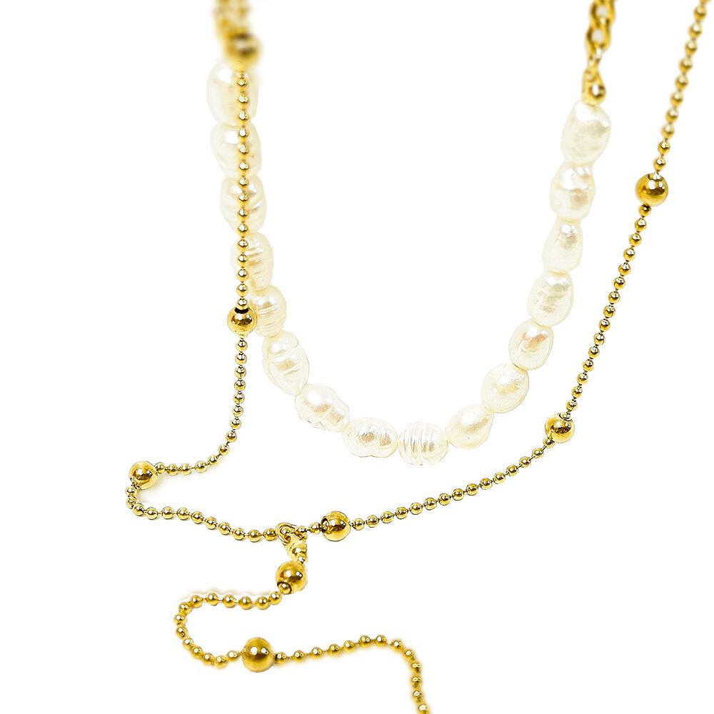 【年始セール】Bohemian resort 2連 ネックレス パール ステンレス mnk01