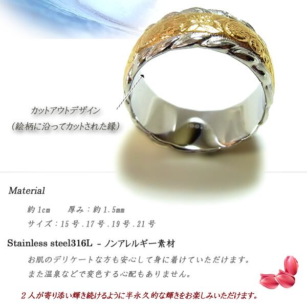 当店のステンレスは、医療用品にも使われているサージカルステンレス316Lです。変色もせず・傷・汚れにも強く、アレルギーを起こしづらい安心な素材です。 半永久的な輝きを演出します!