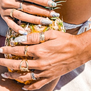 太めのデザインで、指先に大きな存在感のある指輪です。