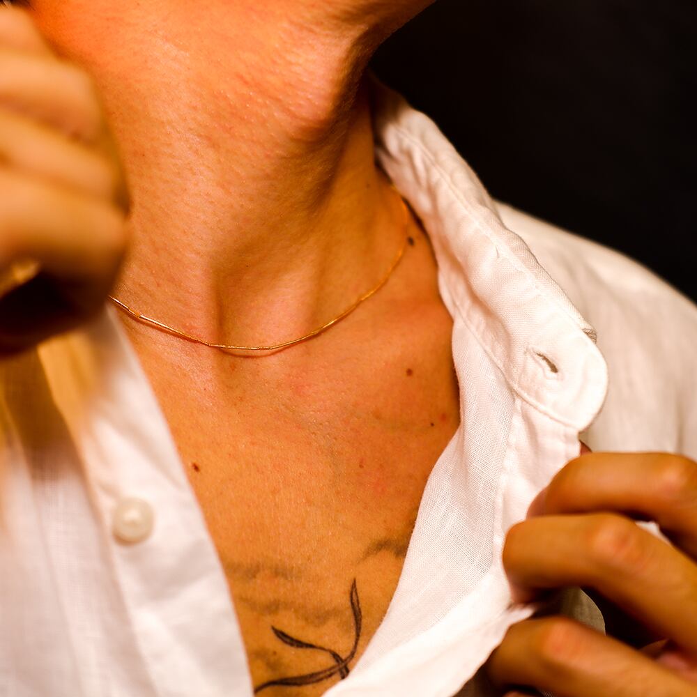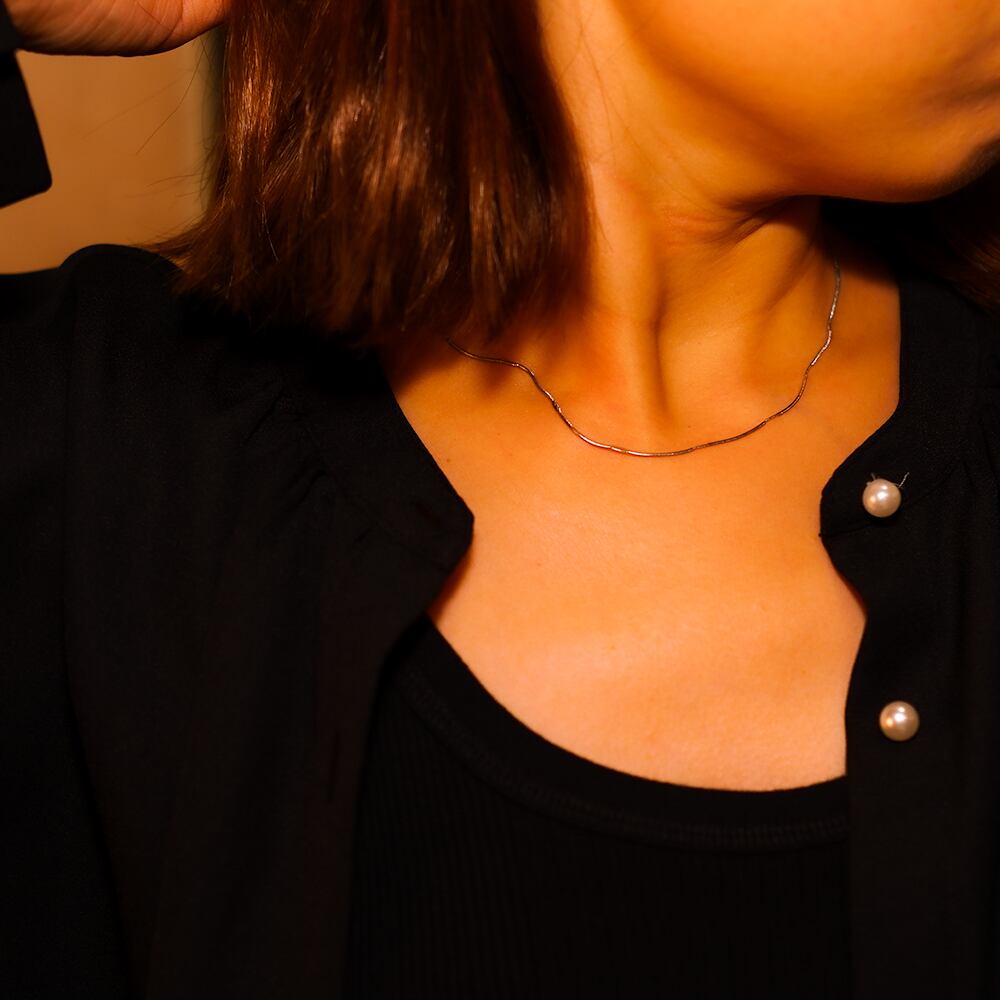 しなやかなチェーンが自然に首に沿い、
