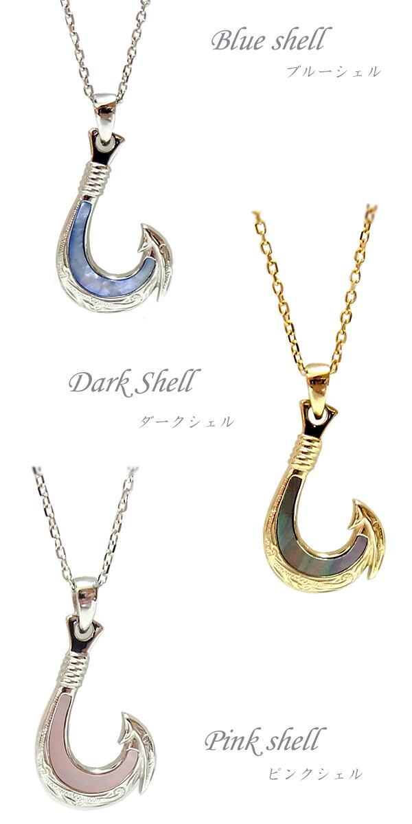 【年始セール】ハワイアンジュエリー フィッシュフック ネックレス シェル gps8956