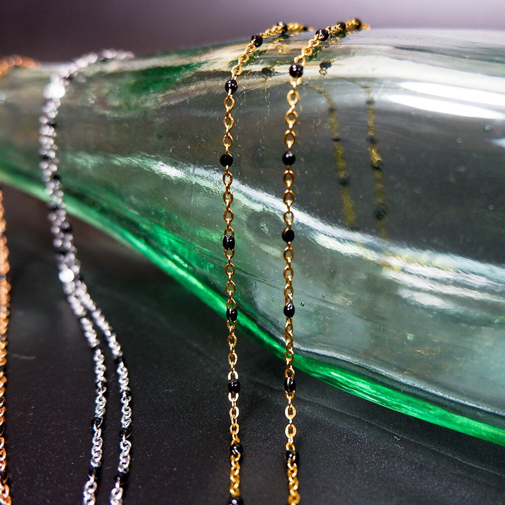 ランダムに配置したオニキスとチェーンを組み合わせた