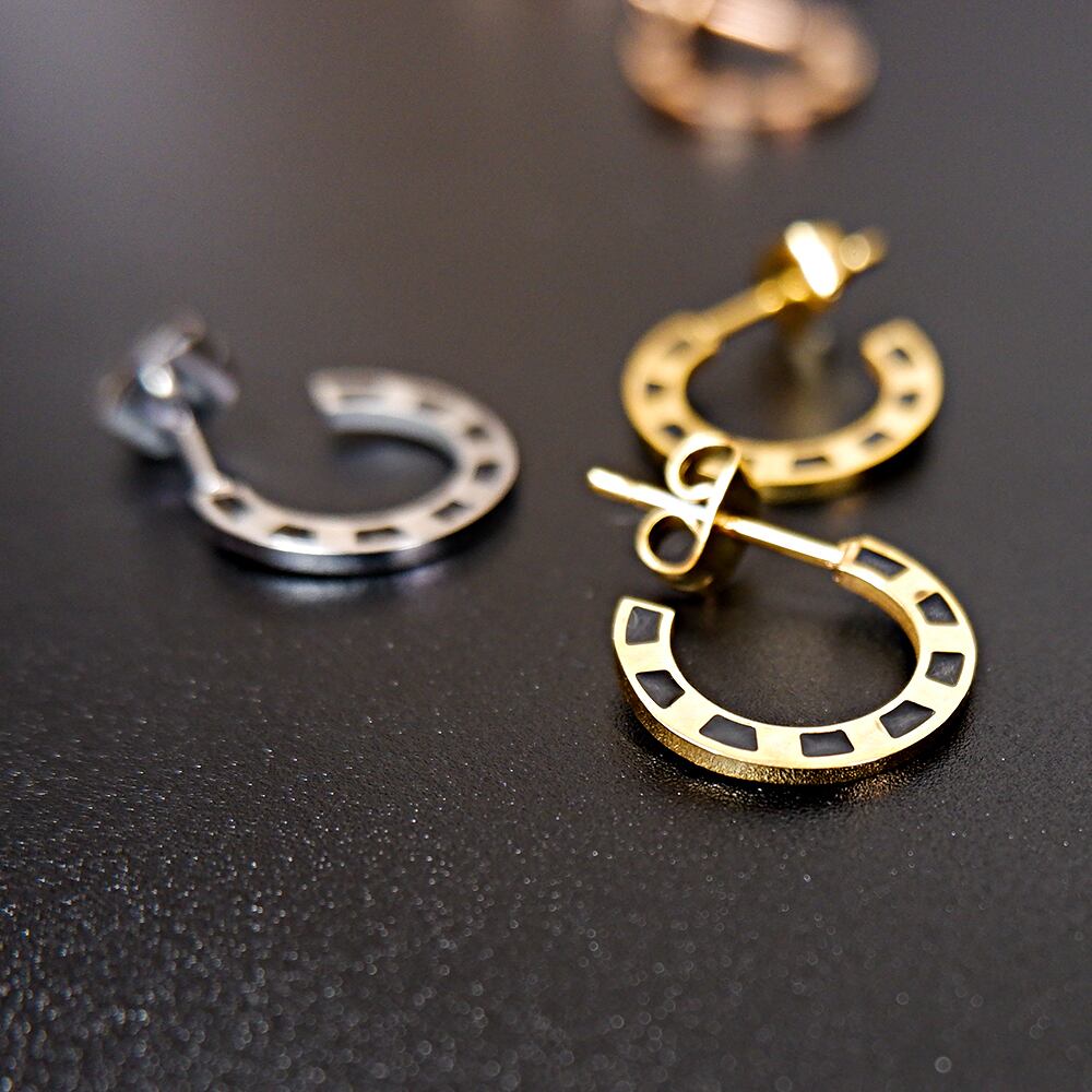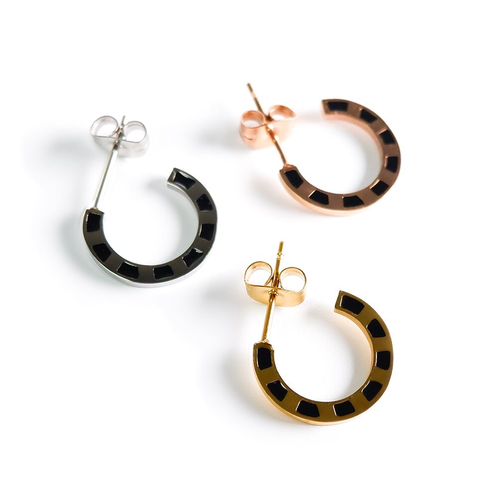 シックで大人びた印象のブラックカラーピアス。